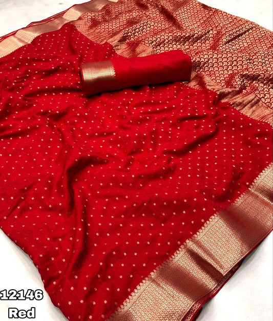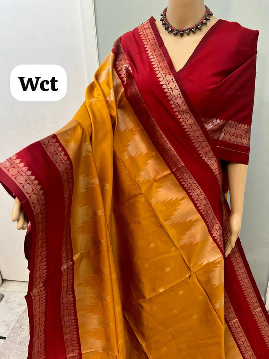 Traditional Red and Yellow Semi silk pattu sarees - zari work wedding saree