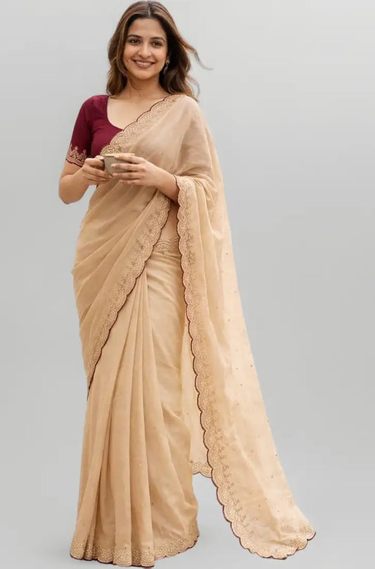 Traditional charm with a creative touch – discover our beautifully crafted designer sarees.