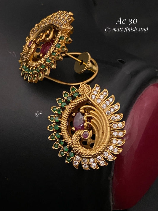 Jumuki style CZ Matti finish necklace set - high neck jewellery set, indian necklace, lehenga jewellery, necklace set with jhumka or Jimiki