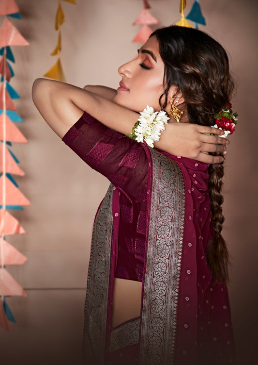 Ice Georgette Readymade Saree - One Minute Saree, ready to wear sarees, party wear saree