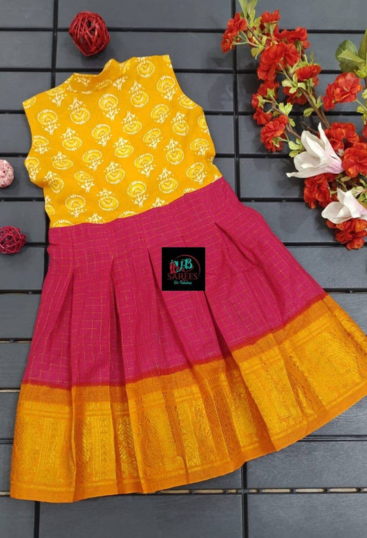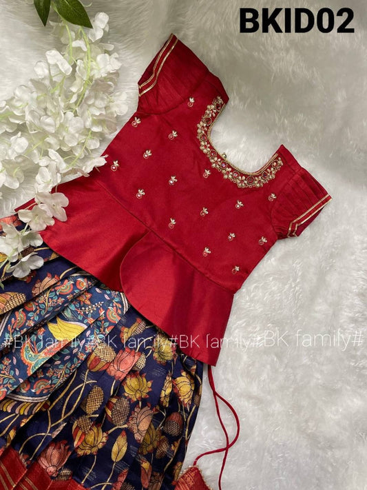 Kalamkari kids lehenga Pattu pavada - kids lehenga - girls pattu pavada - maggam work pattu pavada