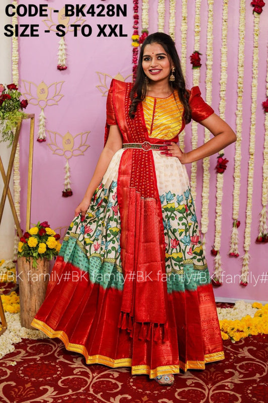 Kalamkari Pattu gown - indian traditional dress - party wear gown - floor length gown - pattu dress in uk