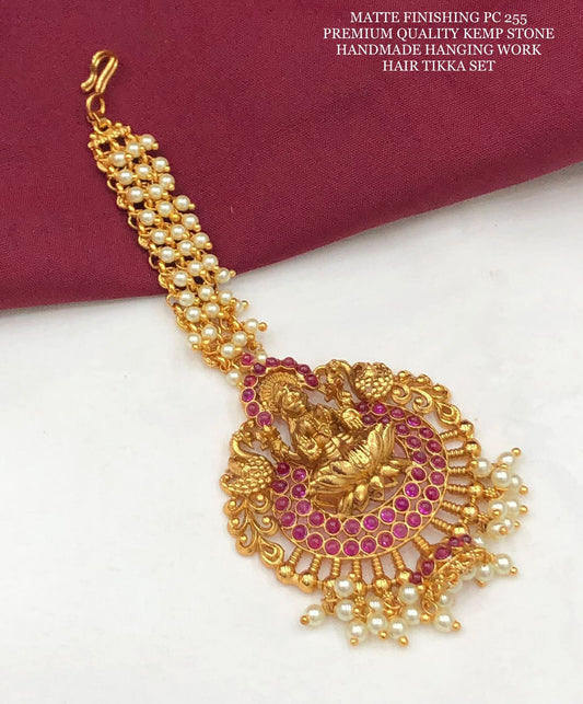 Matte finishing premium quality kemp stone handmade hanging work hair tikka set Tikka, gold Mangtikka, indian Jewllery for Wedding
