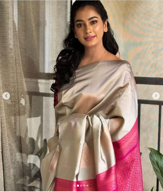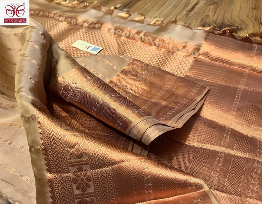 Pastel shades, copper border pure kanchivarm silk saree, wedding silk, soft silk saree, silk mark certified, bridal wedding silk - soft silk saree - Kanchipuram silk saree - silk mark certified