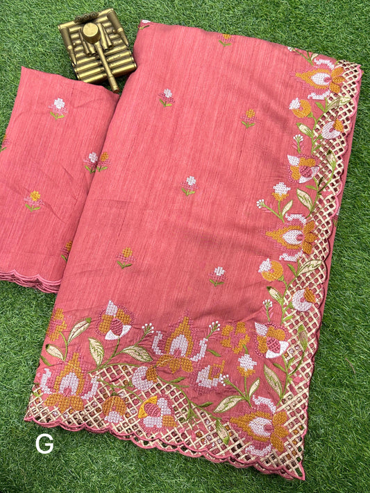 Party Wear Soft golden brown embroided Rangoli Silk Saree