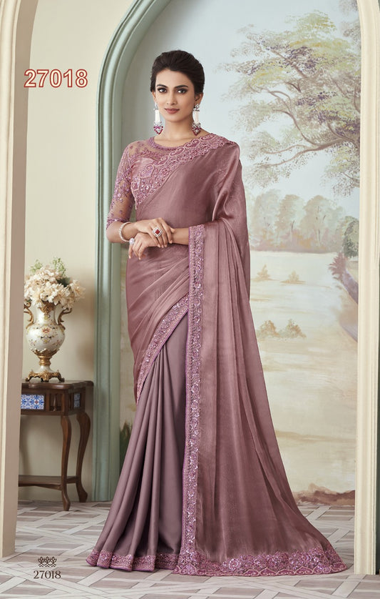 Onion Pink Party wear saree with designer blouse - Wedding wear fancy saree