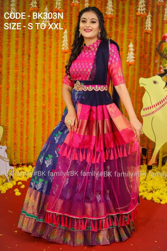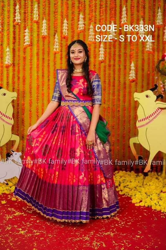 Pattu dress - Ikkat Pattu dress - lehenga dress - indian pattu gown