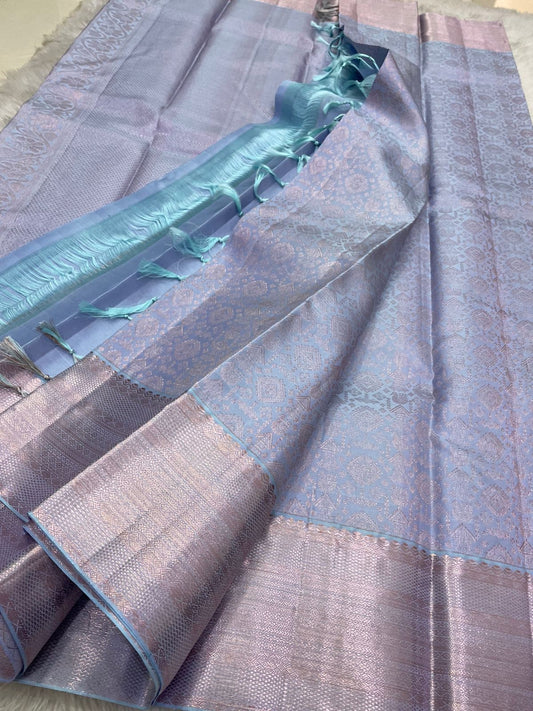 Pastal blue with silver waving Bridal pure kanchipuram silk saree - wedding silk - soft silk saree - silk mark certified