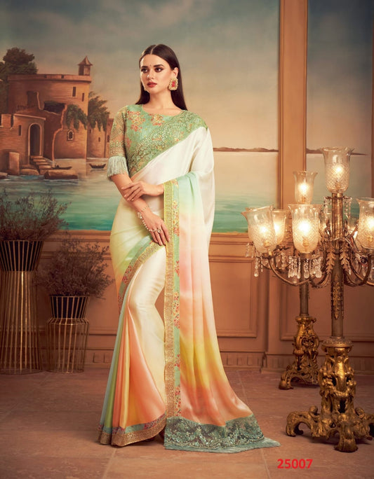 Pastel green saree - Pure soft satin silk saree Designer saree, party wear, wedding wear saree, luxury designer saree