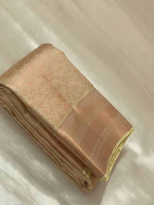 Pastel colour with zari waving Bridal pure kanchipuram silk saree - wedding silk - soft silk saree - silk mark certified