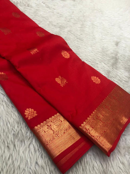 Red and Yellow Kanchipuram soft silk saree - borderless saree - silk mark certified