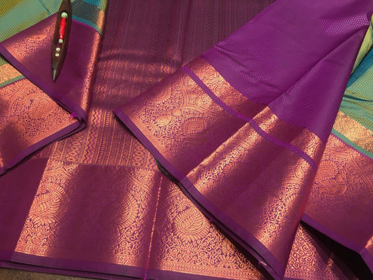 Purple Pure Kanchipuram Silk Saree with 2gram gold pure Antique zari Handloom kanchipuram - silk mark certified - bridal saree
