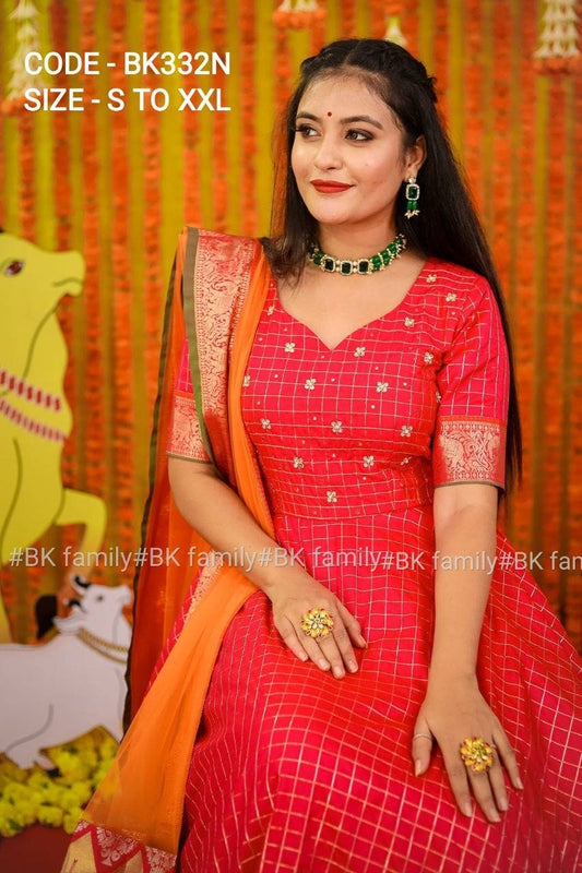 Rani PINK Colored Gown Pattu dress - red floral dress - lehenga dress - lehenga dress