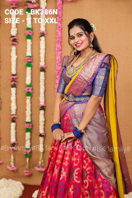 Rani Pink and yellow Pattu lehenga indian traditional halfsaree
