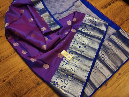 Purple and Silver light weight silk saree - wedding silk - soft silk saree - Kanchipuram silk saree - silk mark certified