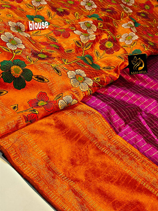 Clearence Aari work readymade saree bloude, purple saree blouse