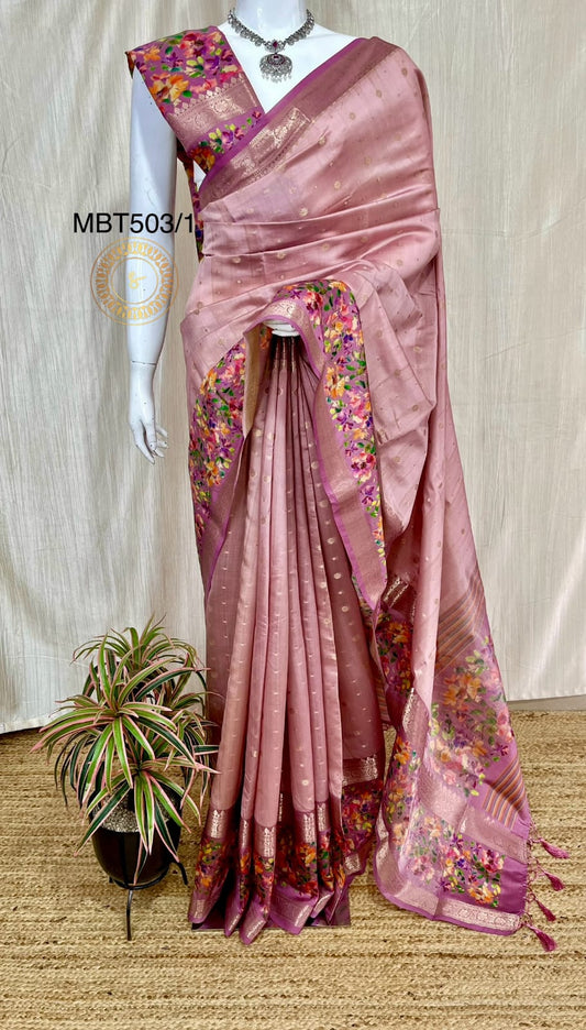 Coral Pink - Visca Slub Silk Saree with Intricate Cut Work & Embroidery