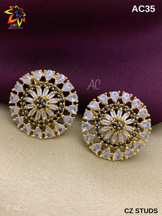 clearance / SALE Gold finish Big stud earrings - Indian style earrings, Stonework Studs