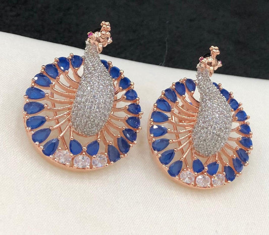 Clearance / SALE - Rose gold finishing CZ ad stone premium quality peacock design Stud / Earrings