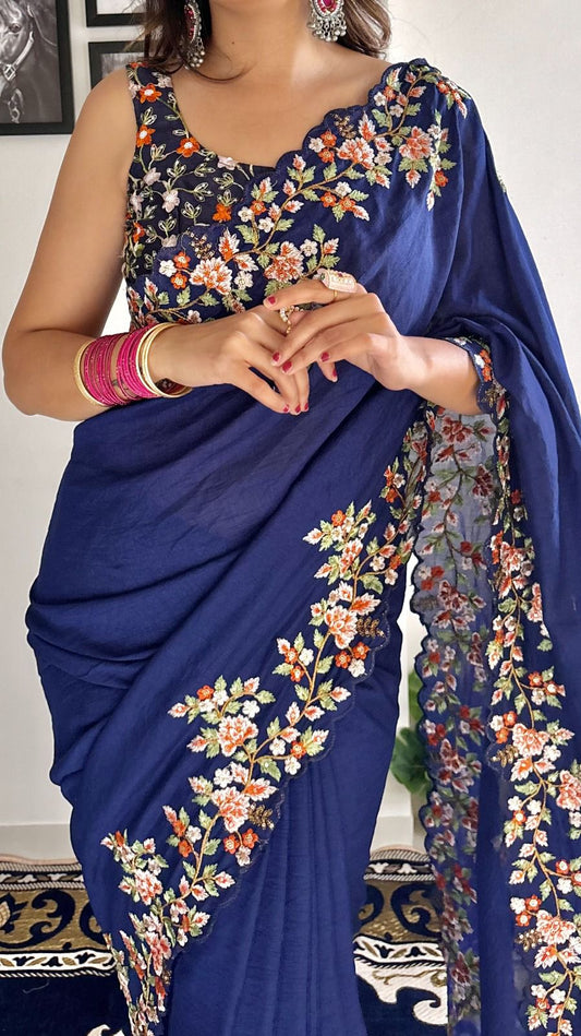 dual Deep blue party wear designer saree