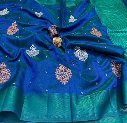 Deep turquoise Pure Narayanpeth Mercerised Cotton Sarees