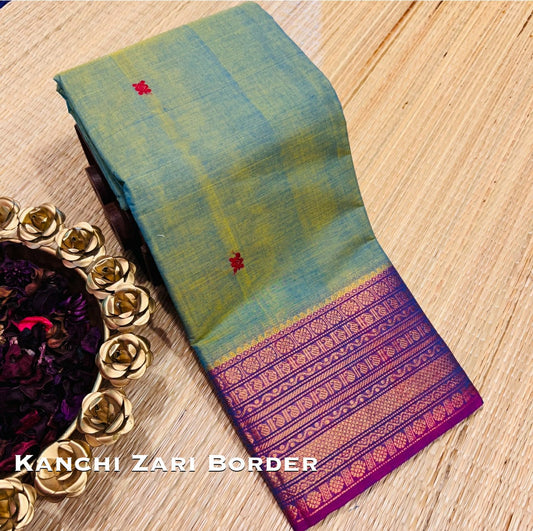 Elegant Kanchi Cotton Saree in Teal Green with Rich Zari Border & Pallu