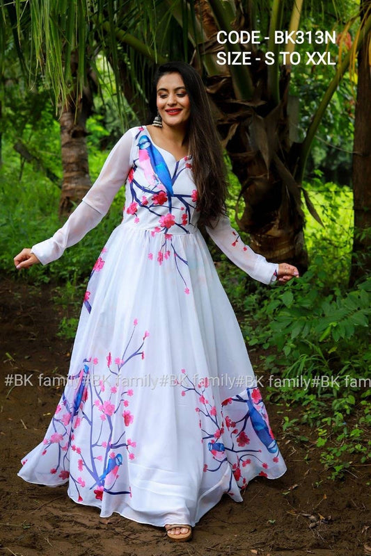 Exquisite floral dress - white indian gown - party wear gown - indian dress for women