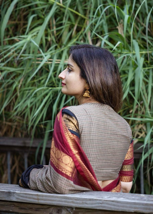 Ganga Jamuna border pure kanchi cotton saree in check