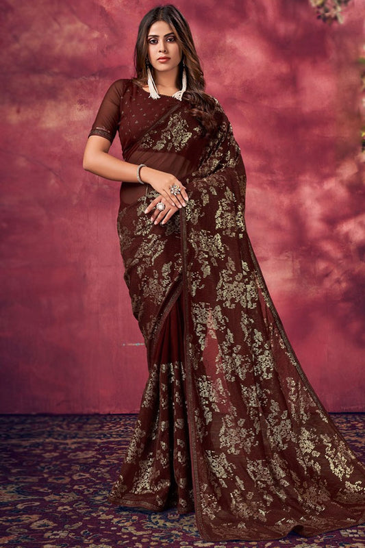 Georgette Sequins Embroidered saree in Dark Maroon