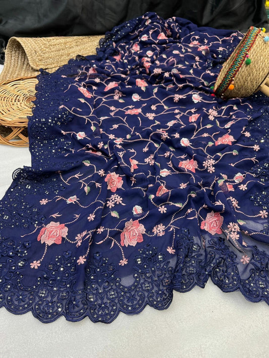 Sold outGeorgette embroidary fancy saree
