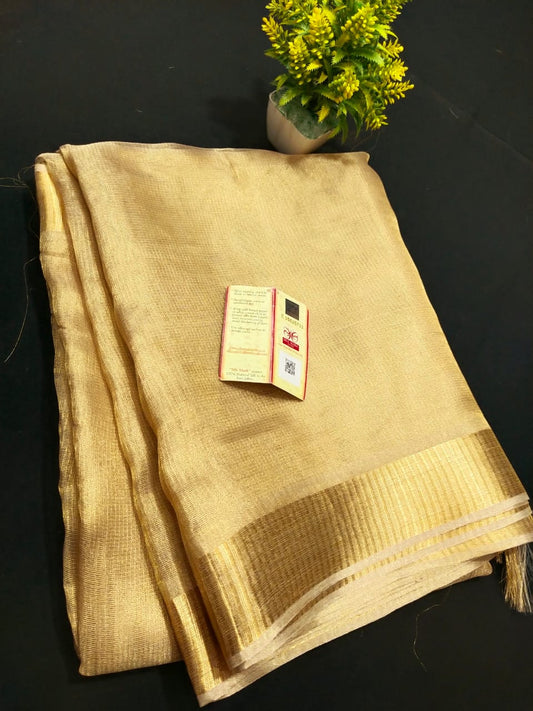 Gold Linen tiussue saree - handloom saree - Gold