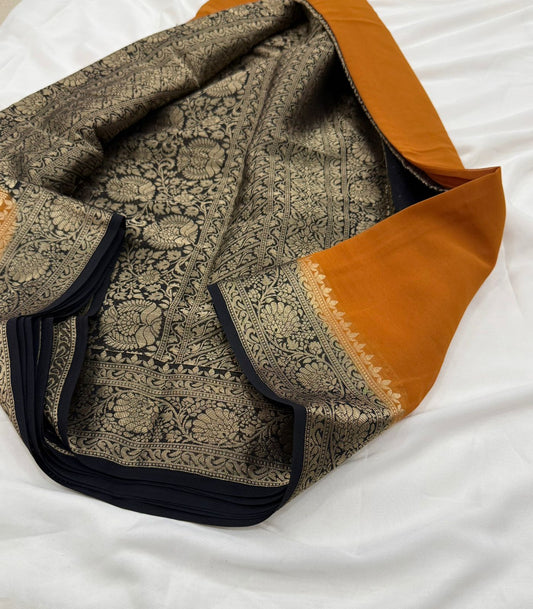 mustard yellow georgette silk saree
