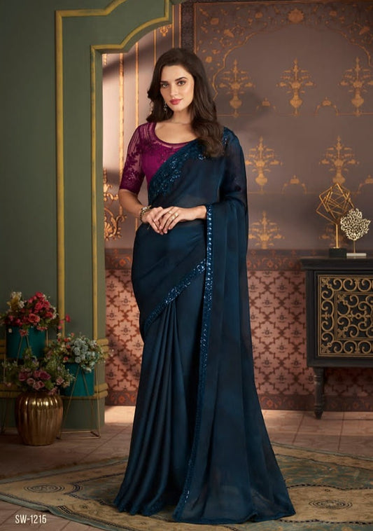 Party wear saree with desginer blouse - Wedding wear fancy saree