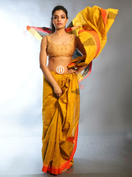 Amber green Pure Narayanpeth Mercerised Cotton Sarees