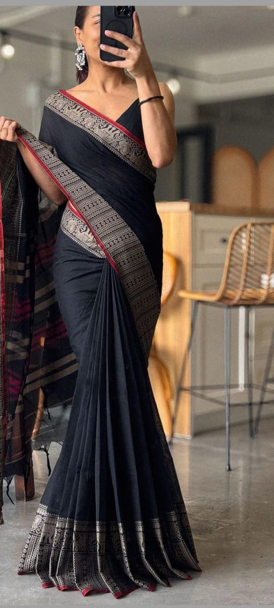 Graceful Black narayanpeth Mezadaise Cotton Saree with Intricate BorderRegular price £35.00 GBPRegular priceUnit price / per-
