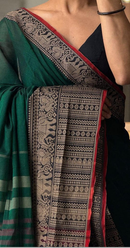 Bottle Green narayanpeth Mezadaise Cotton SareeRegular price £35.00 GBPRegular priceUnit price / per-