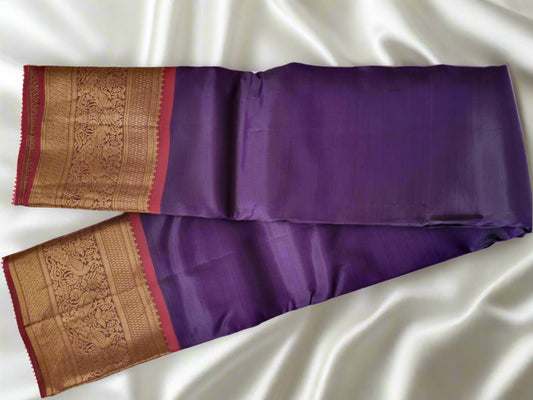 Kanchipuram Pure Silk Saree Online – Royal Purple with Gold ZariRegular price £115.00 GBPRegular priceUnit price / per-