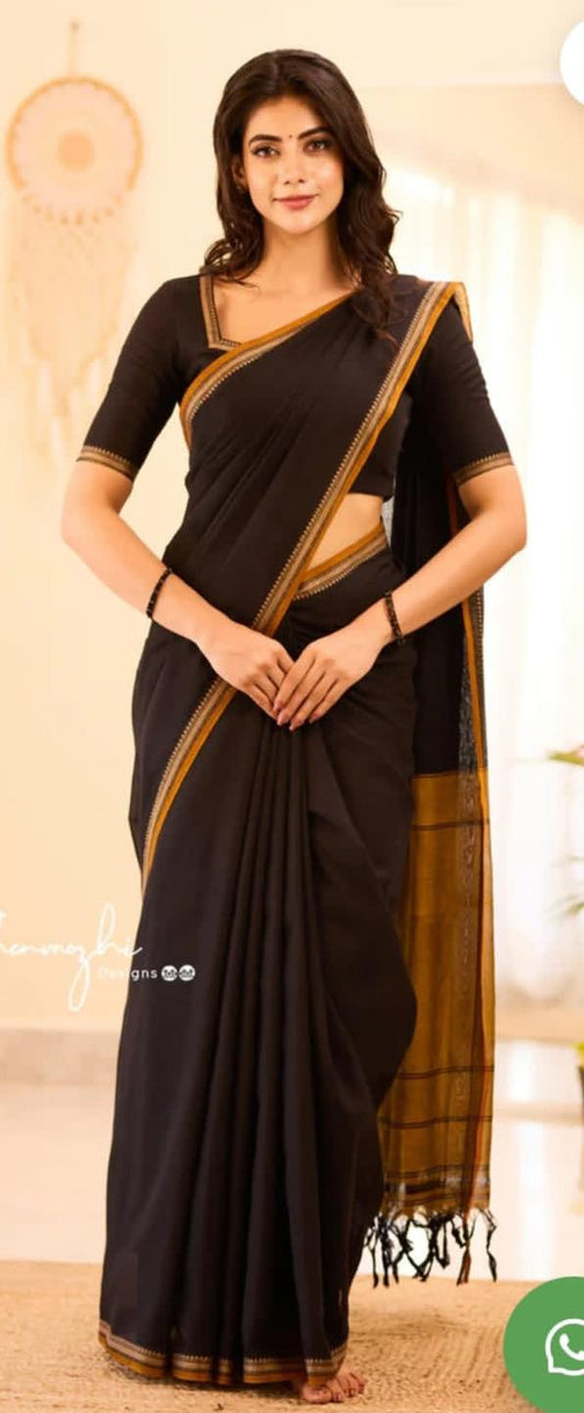 Graceful Black narayanpeth Mezadaise Cotton Saree with Intricate Border