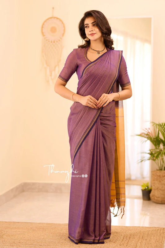 Small border - Brown Narayanpeth Mercerised Cotton Saree