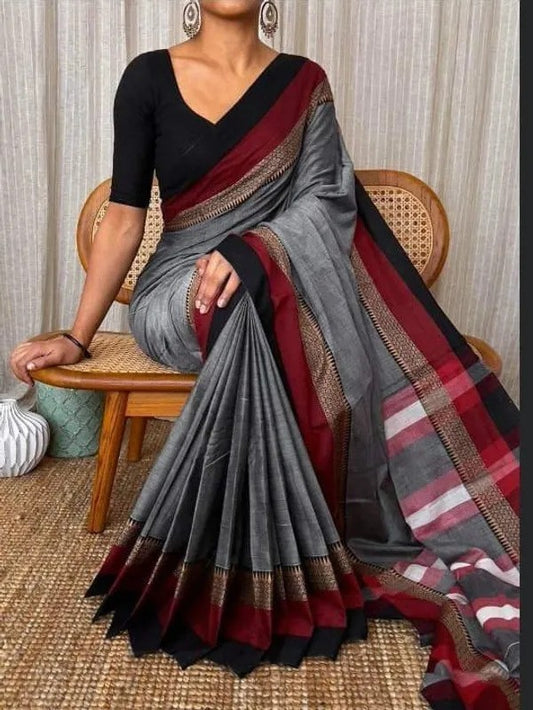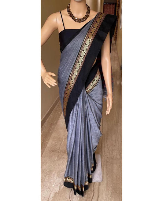 Small border - Gray Narayanpeth Mercerised Cotton Saree