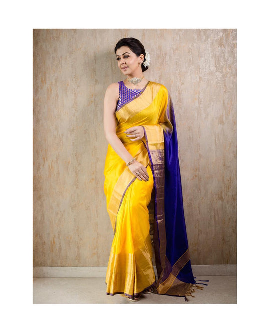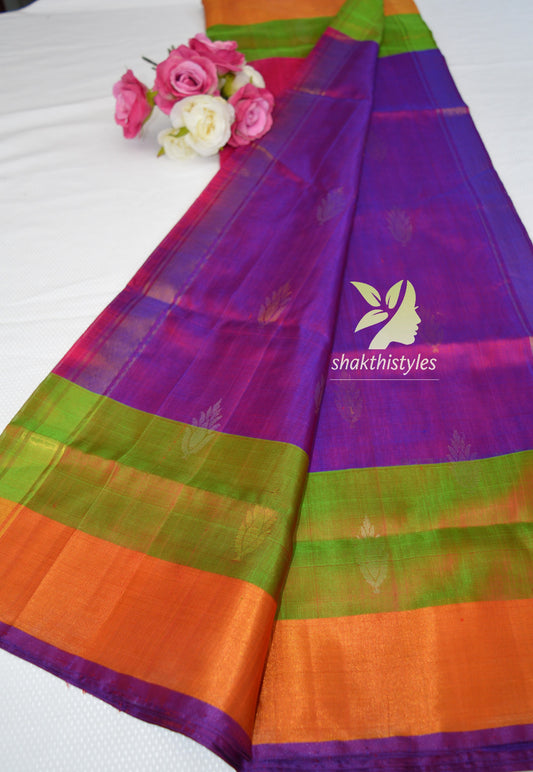 Purple and yellow pure Uppada Silk Pattu Saree, Wedding Saree, Pure silk saree, handwoven silk saree, two tone saree for womanRegular price £69.00 GBPRegular priceUnit price / per-