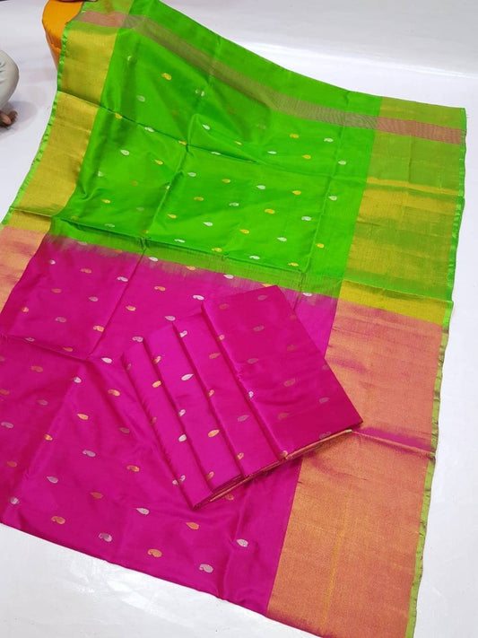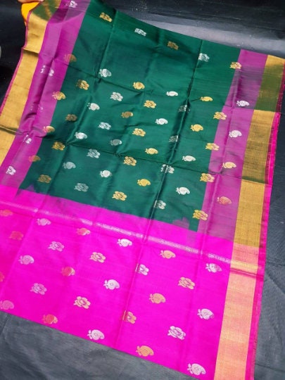 Two tone green with pink Uppada Silk Pattu Saree, Wedding Saree, Pure Uppada Pattu Saree, handwoven silk saree for womanRegular price £65.00 GBPRegular priceUnit price / per-