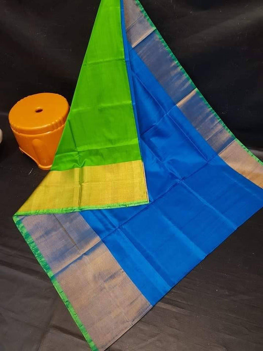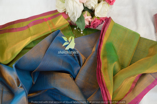 Green and blue Uppada Silk Pattu Saree, khadi big border Pure Uppada Pattu Saree, handwoven silk saree, two tone saree for womanRegular price £75.00 GBPRegular priceUnit price / per-