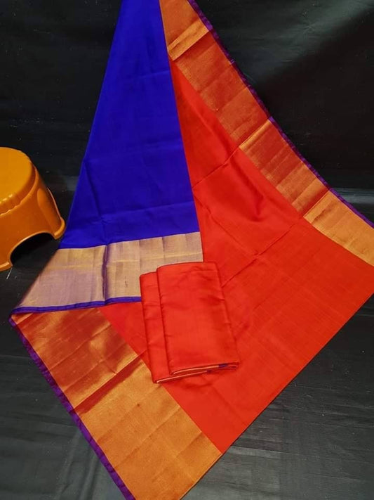 Red and blue Uppada Silk Pattu Saree, khadi big border Pure Uppada Pattu Saree, handwoven silk saree, two tone saree for womanRegular price £75.00 GBPRegular priceUnit price / per-