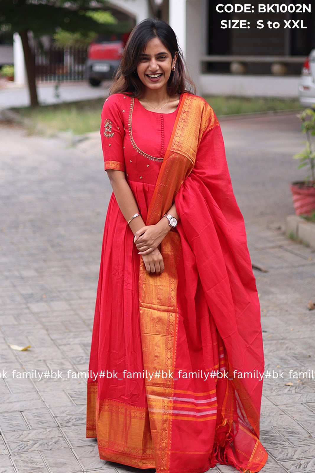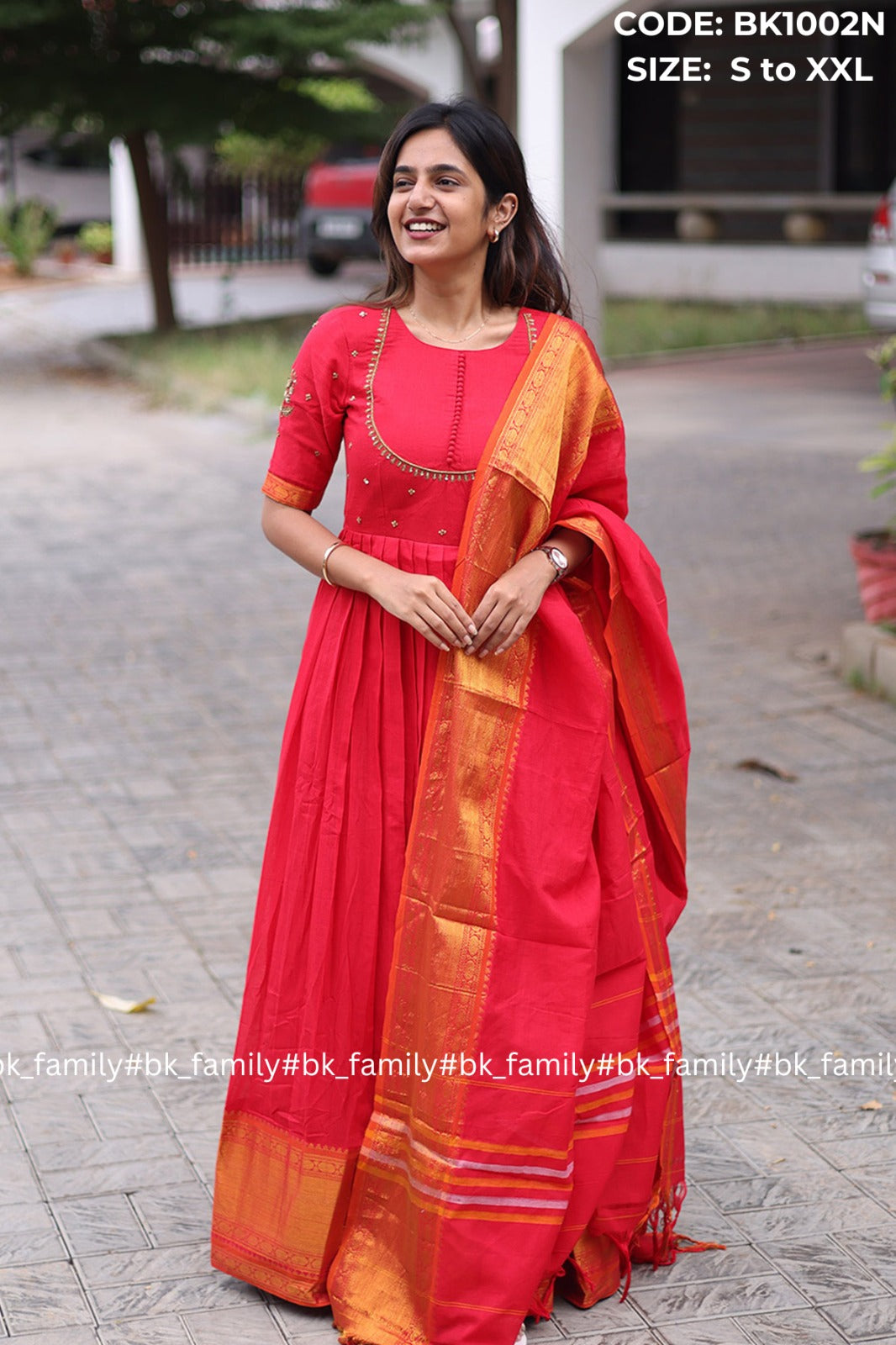 Product Name: Sutrangi Handloom Anarkali (Dress) in Red