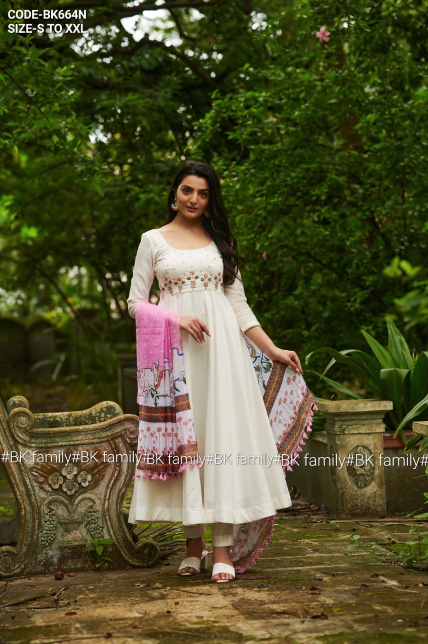 The Kurta is paired with Pent, typically made of a matching or coordinating fabric, and may feature additional embroidery or embellishments. To complete the outfit, a Pichwai dupatta is draped over the shoulders. Pichwai is a traditional Indian textile art that involves hand-painting or block-printing intricate designs onto cotton or silk fabric. The dupatta is typically adorned with kalamkari patterns that complement the colors and embellishments of the Kurta and pent.