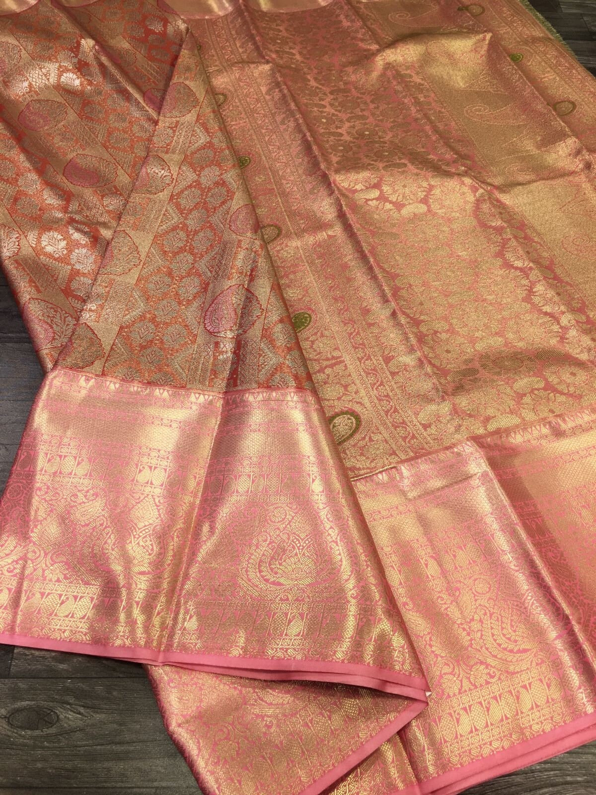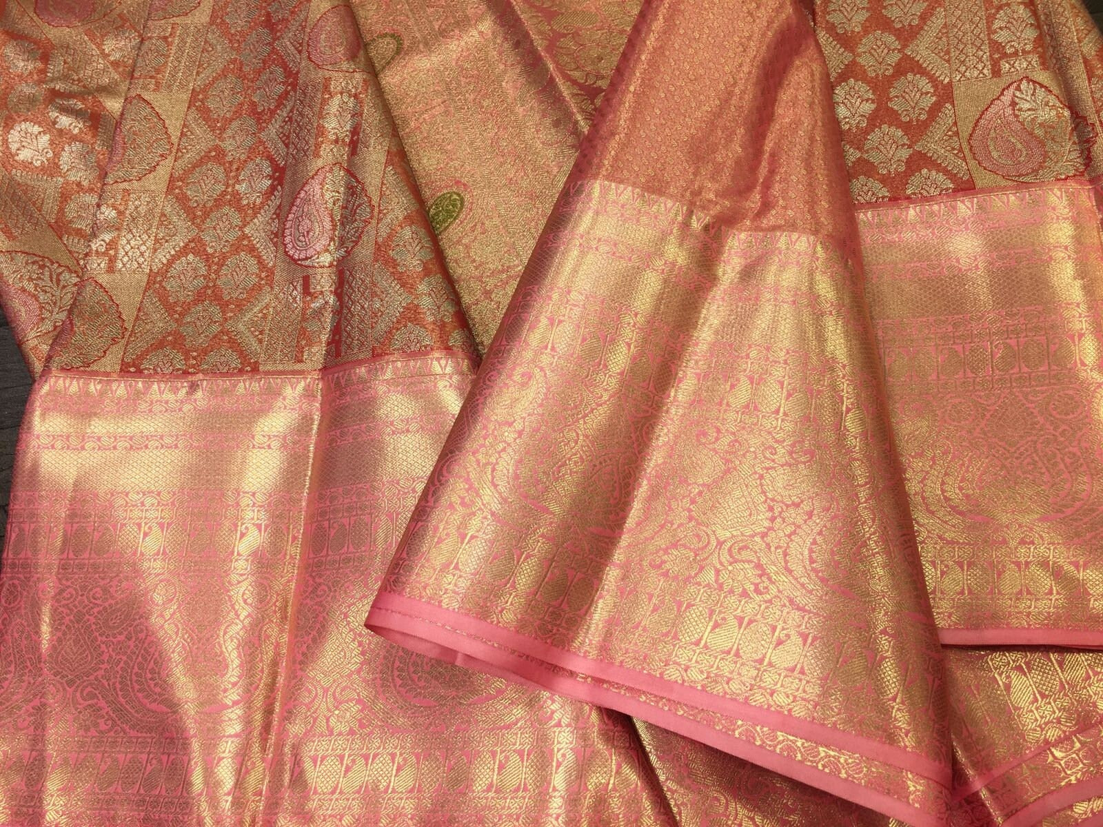 Peach pink Semi-Kanchipuram Tissue Saree - wedding saree