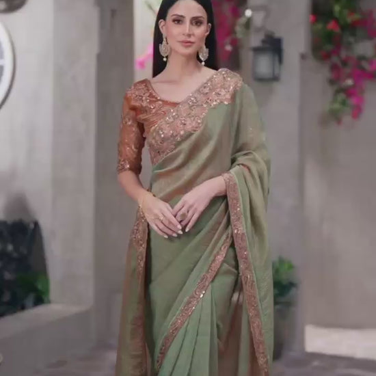 Celebrate timeless elegance with our Vibrant Pasta Green Satin Saree, tailored from high-quality satin for a smooth and flowing fit. Both the saree and blouse are adorned with detailed sequin and thread embroidery, perfect for weddings, receptions, festivals, and special events. The fresh pasta green hue brings a lively yet refined appeal, enhanced by a subtle sheen that accentuates your look. Complement this ensemble with bold jewelry to create a stunning and sophisticated appearance.